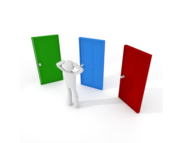 扉 / 戸 緑 / 悩む男性 - 急ぎのデザインをフリー素材で制作する。
