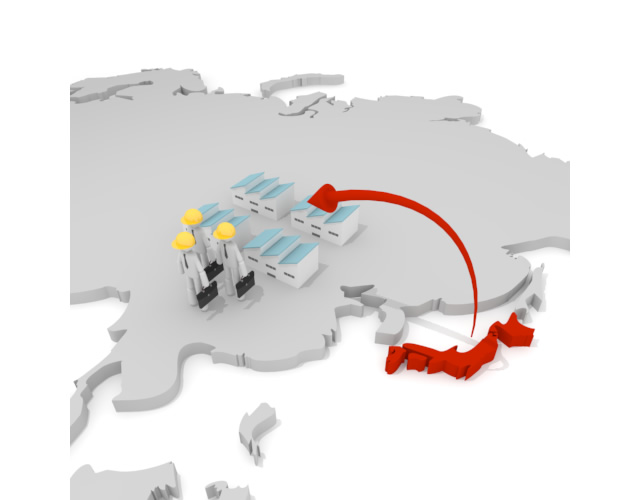 移転 / 海外支店 転勤 / 発展 - 3Dソフトで制作したイラストです。