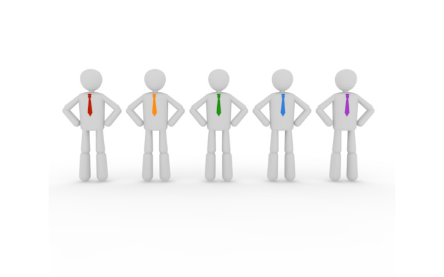 横一列に並ぶ / 5色 - ワーキング/仕事/勤務/会社